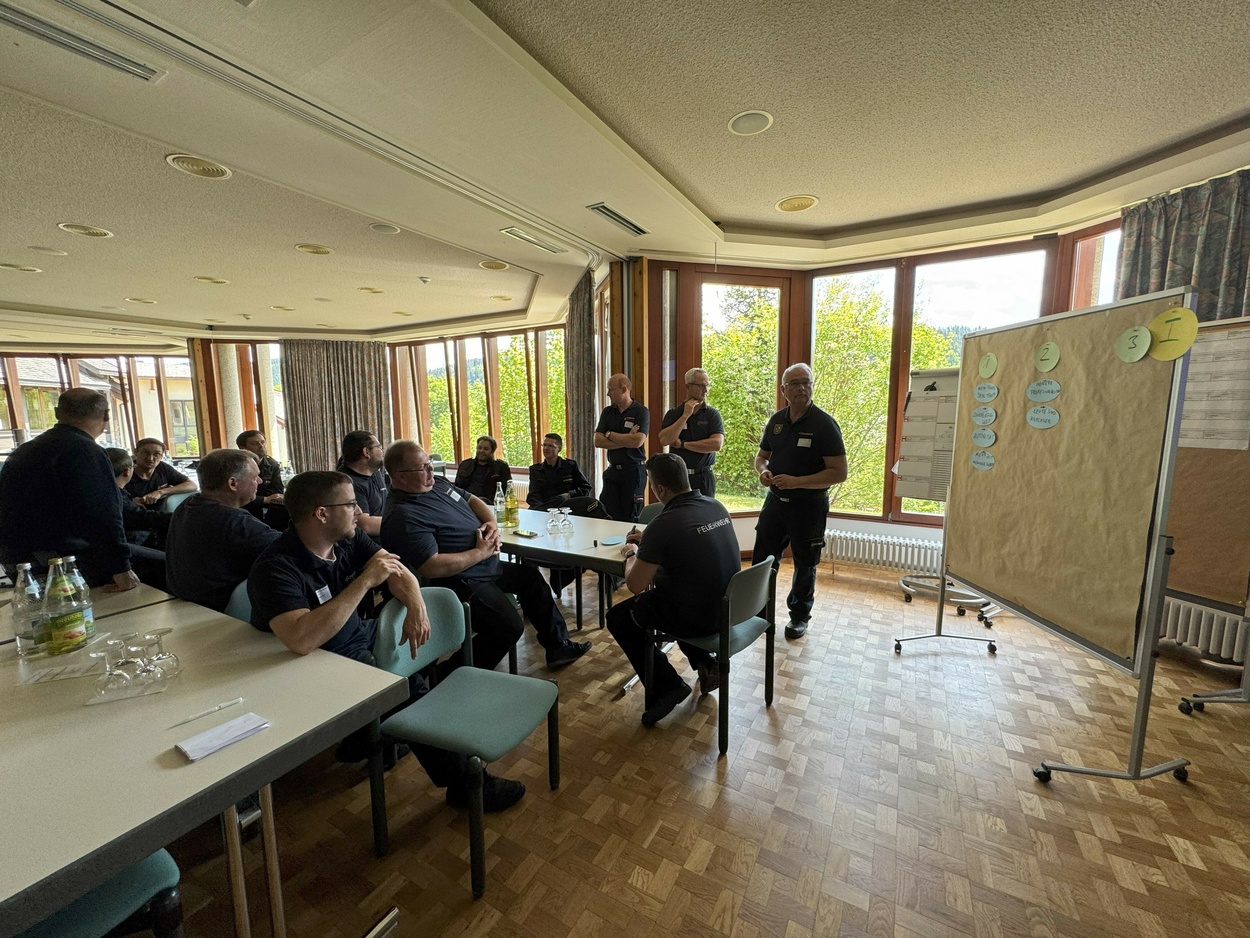 26.05.2025Nach mehrjähriger Pause, trafen sich am Freitag, den 23. Mai die Führungskräfte der Feuerwehren im Landkreis Breisgau-Hochschwarzwald zum zweitägigen Kommandanten-Seminar im Feuerwehrhotel in Hinterzarten. Etwa 100 Kommandanten, Abteilungskommandanten und stellvertretende Kommandanten folgten der Einladung von Kreisbrandmeister Mike Hengstler an den Titisee, der mit seinem Mitarbeiterstab ein vielfältiges Programm geboten hatte.
